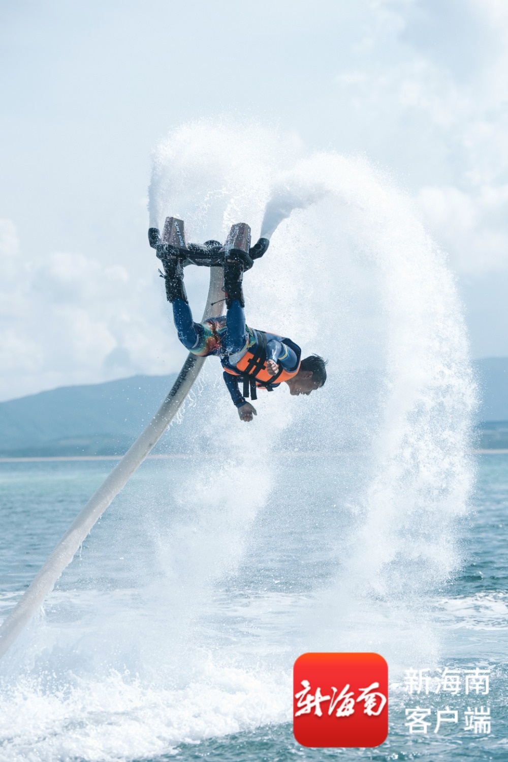 “水上飞龙”引来阵阵惊呼,只见专业教练稳控设备,游客借助喷射水力腾空而起,在海天之间自由翻转。“失重感太刺激了,就像在海上飞!”刚体验完项目的北京游客赵景文激动地说,她的笑声随着海风飘远。