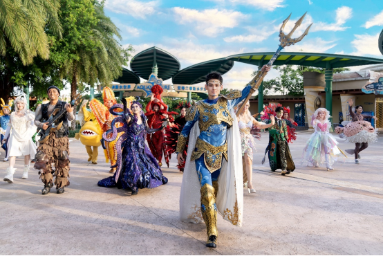 全新升级的大型原创驻场秀C秀将在假期安排加场,生动演绎亚特兰蒂斯的神秘传说。C秀通过精湛的表演和先进的特效技术,将亚特兰蒂斯的繁荣与神秘展现得淋漓尽致,为观众带来一场视觉与听觉的双重盛宴。演出之外,“七海首领”还会在阿特兰斯王子的带领下走出剧场,开启欢乐巡游。他们身着绚丽的海洋主题服饰,从水族馆大堂出发,一路载歌载舞,经过购物大道,最终抵达水世界园区,沿途,他们与游客热情互动,挥手、击掌、合影,传递欢乐。