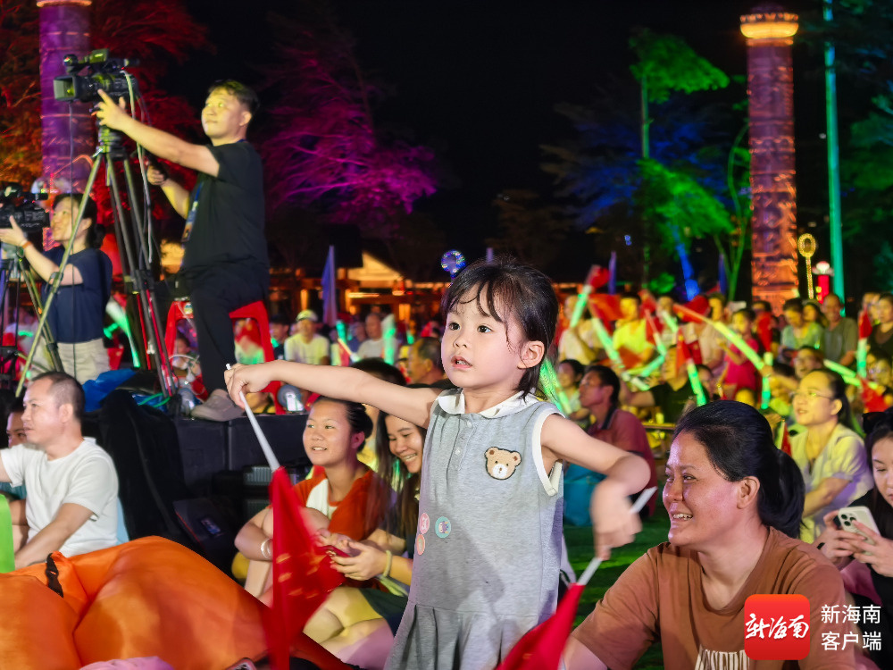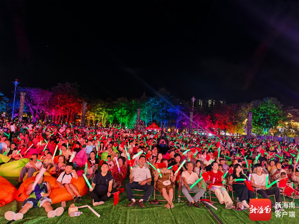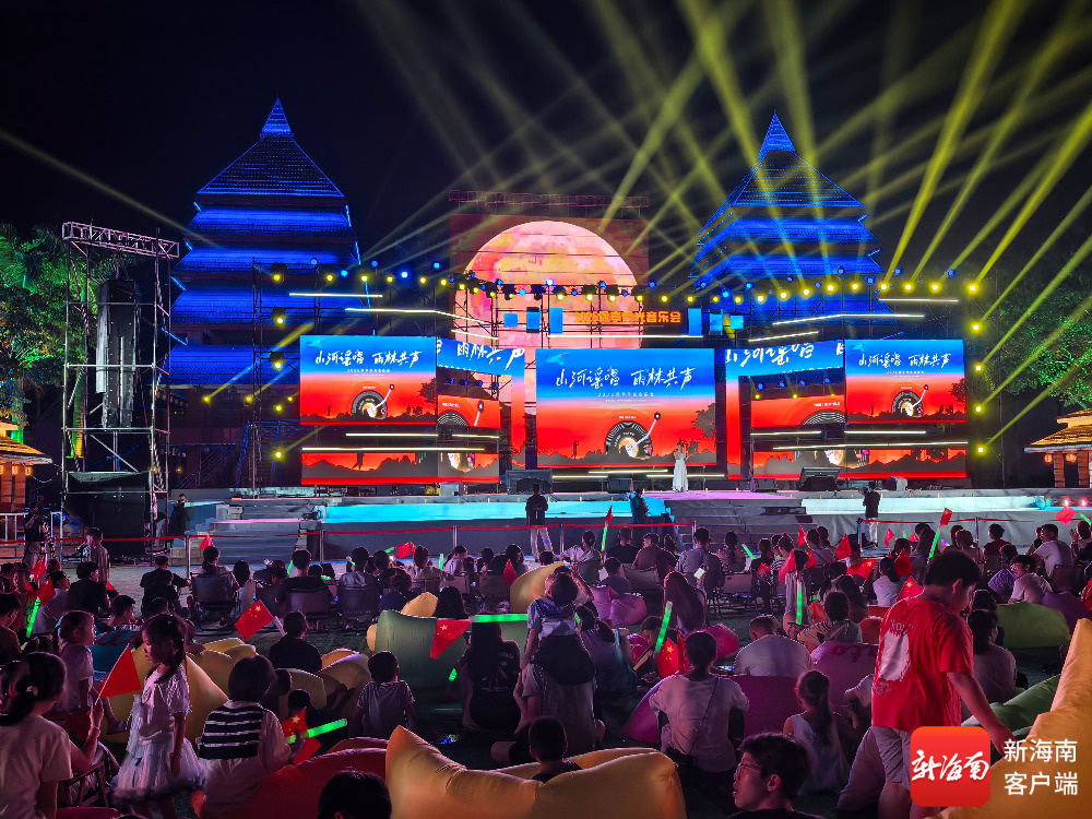 荧光棒与国旗挥动,歌声在水面与月光间回荡,保亭的夜晚因艺术与文化的交融而熠熠生辉。