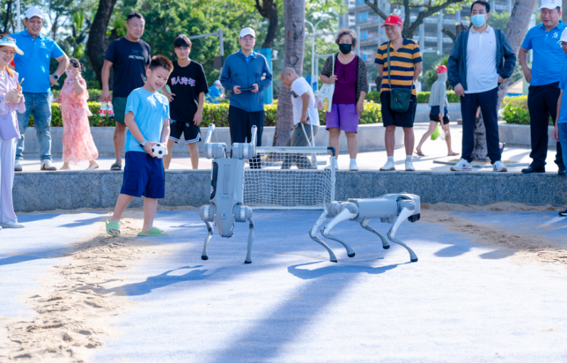 活动现场设置了三人篮球、沙滩足球、柔术、卡巴迪和沙滩排球等五个亚沙会竞赛项目体验区,同时还特别增设了科技感十足的Ai人工智能机器狗、机器人互动体验区。参与群众在碧海蓝天的映衬下,既能欣赏迷人海景,又能沉浸式体验各项沙滩运动的独特魅力,还能获得三亚亚沙会专属纪念品。现场欢声笑语不断,大家在各体验区跃跃欲试,感受着沙滩运动带来的快乐。