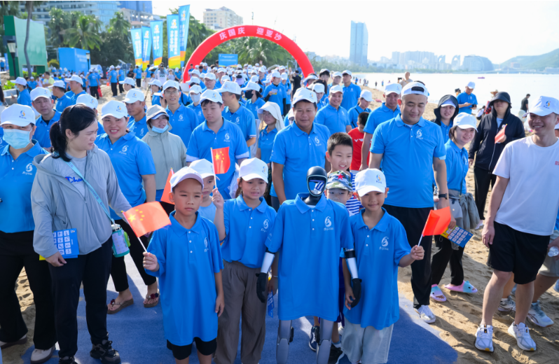 随后,来自社会各界的1000余名群众代表热情加入了沙滩健步走行列,队伍沿美丽的海岸线从海月广场行进至金鸡岭街路口并折返,全程约2公里,生动展现了三亚市民迎接亚沙会的活力与热情。