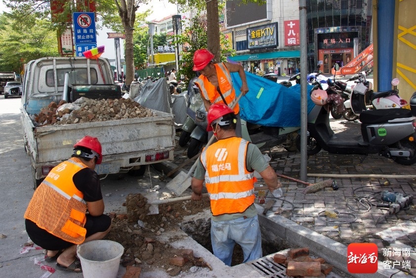 10月4日,工作人员在清理排水系统。昌江融媒体中心供图