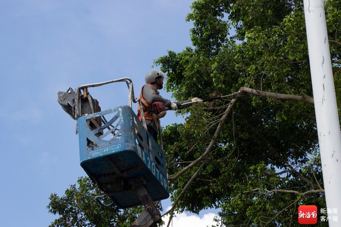 10月4日,工作人员在修剪易掉落树枝。昌江融媒体中心供图