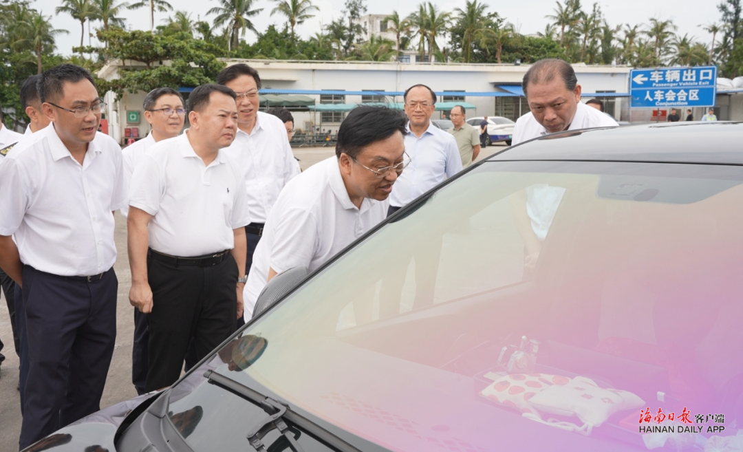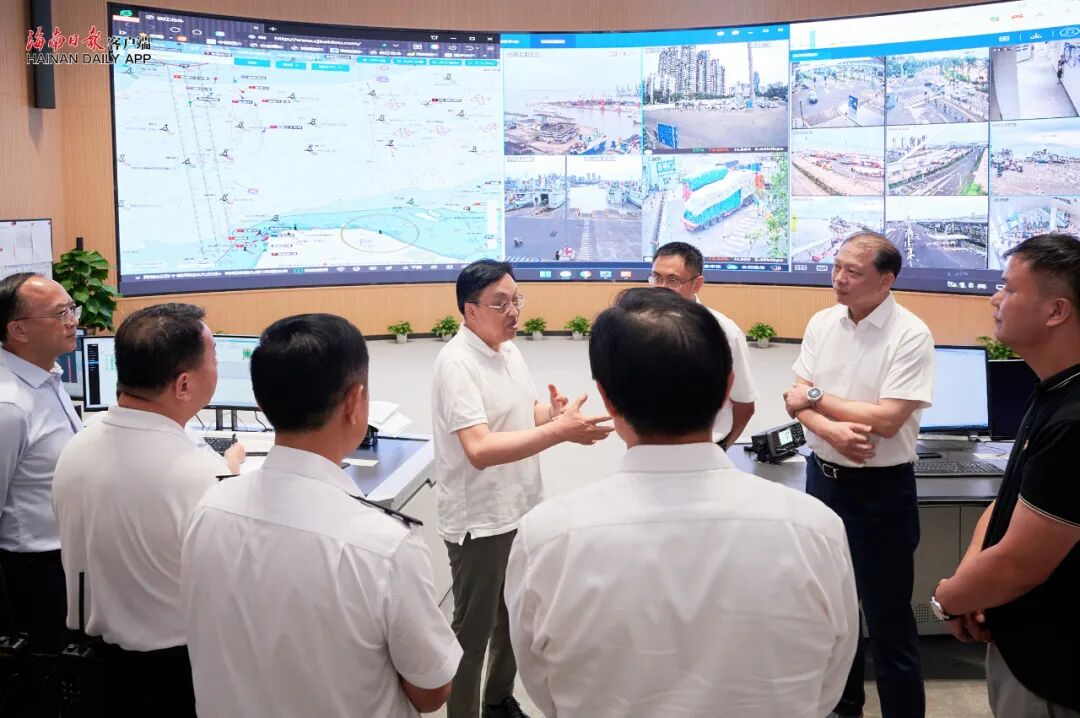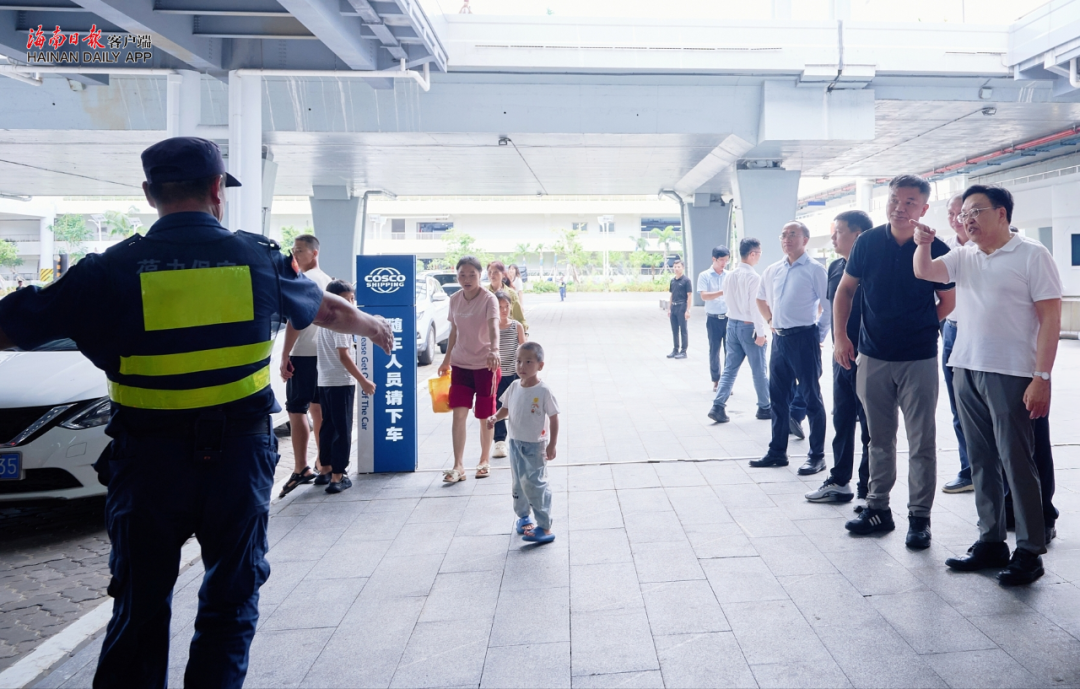 在新海港调度指挥中心,冯飞听取有关部门和单位关于琼州海峡航线复航、新能源汽车过海保障、高峰期运力保障等情况汇报。他指出,国庆中秋假期已进入后半段,琼州海峡过海轮渡将迎来返程客流、车流高峰。要紧盯过海需求,做足充分准备,在确保安全的前提下,加快恢复、科学调配运力,提升新能源汽车等装船和通行效率,全力保障车客平安、高效、顺畅过海。要提升服务能力,优化工作流程,整合各方力量,为进出岛旅客提供更加暖心周到的特色服务,努力营造安心、舒心出行环境。要立足长远提升保障能力,完善各方协同联动,优化进出岛客滚运输航线布局,提升船舶安全性能和绿色环保水平,建设与琼州海峡发展需求相匹配运力模式,提升港区基础设施防灾减灾能力,打造绿色、智慧、经济、高效的航运体系。
