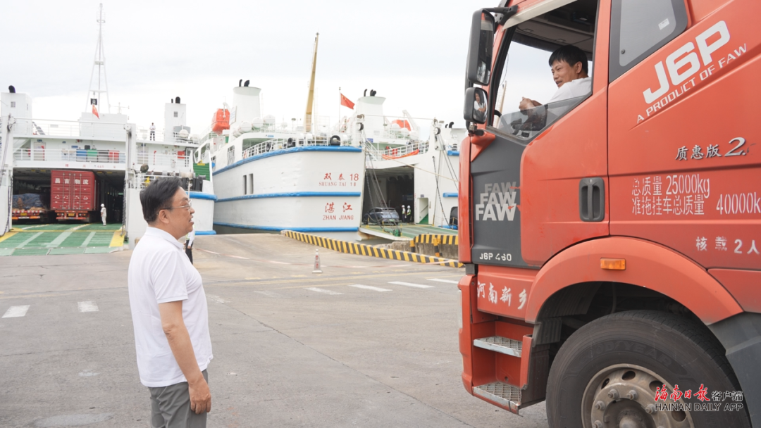 随着台风影响逐渐减弱,琼州海峡各轮渡航线6日迅速恢复运行。当天下午,在秀英港码头泊位和新海港人车分离区,现场工作人员为司机们发放保障物资,引导待渡车辆有序登船。冯飞现场了解新能源车、大货车等过海情况,向一线工作人员和志愿者表示感谢,并与待渡旅客、司机深入交流,祝愿他们归途顺利、中秋快乐。