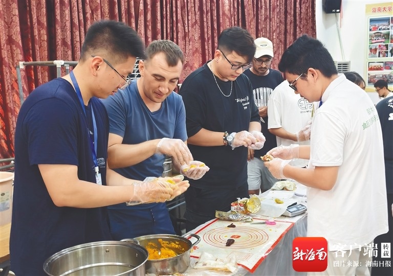 海南大学来华留学生在制作月饼。海南大学中和书院供图