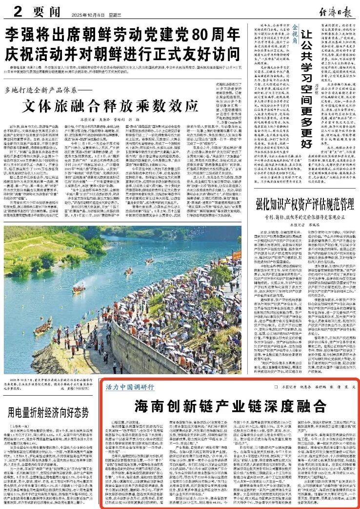 央媒看海南丨《经济日报》:海南创新链产业链深度融合