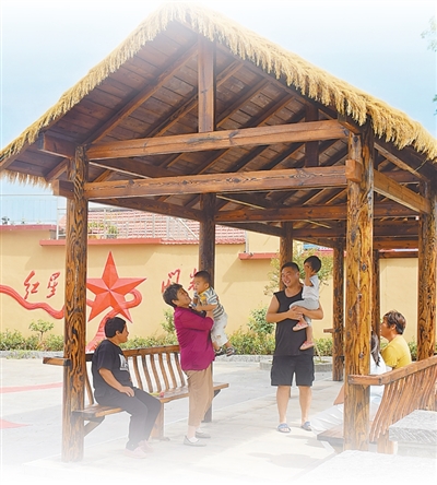 王庄村村民在茅草亭内乘凉。袁君玉摄