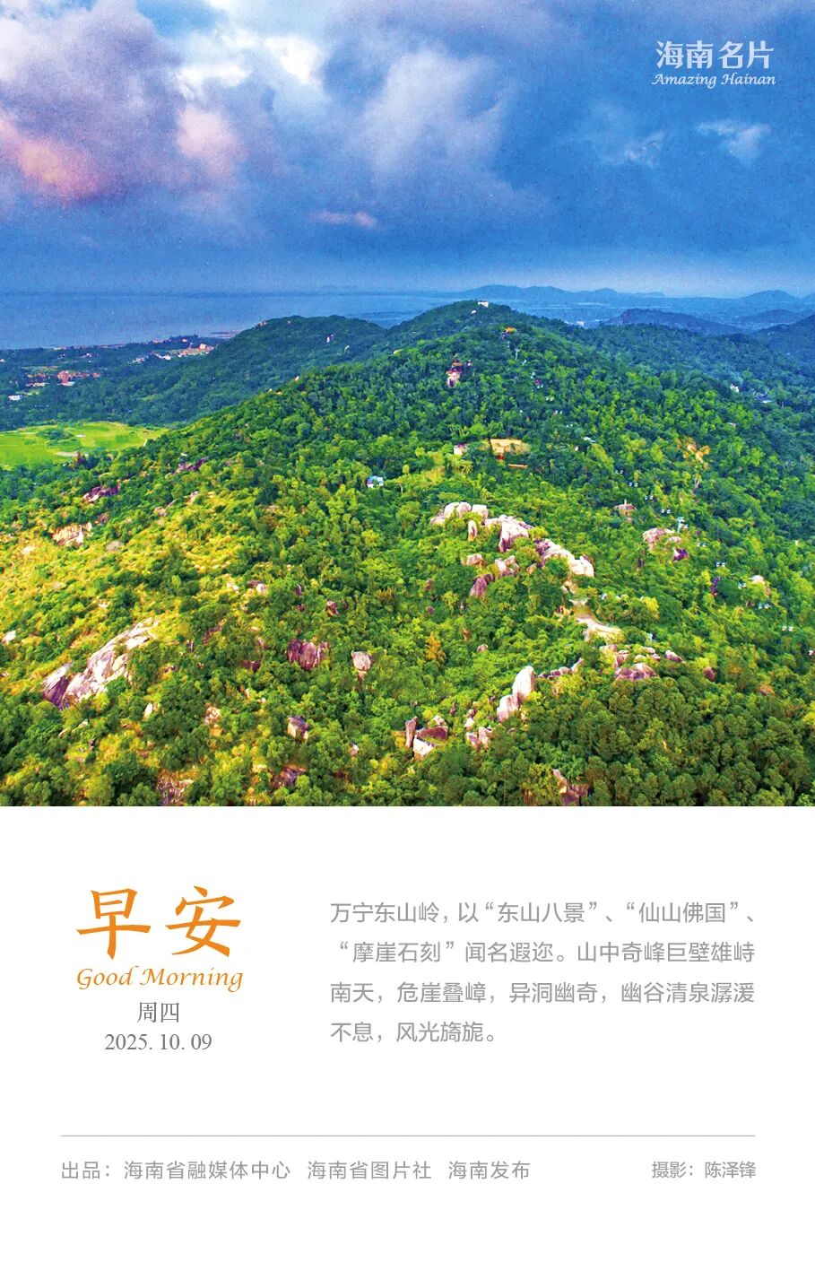 海南省气象台预计,10月9日,海南岛中部多云有雷阵雨,其他地区多云局地有雷阵雨,最高气温31~34℃。(来源:海南气象)