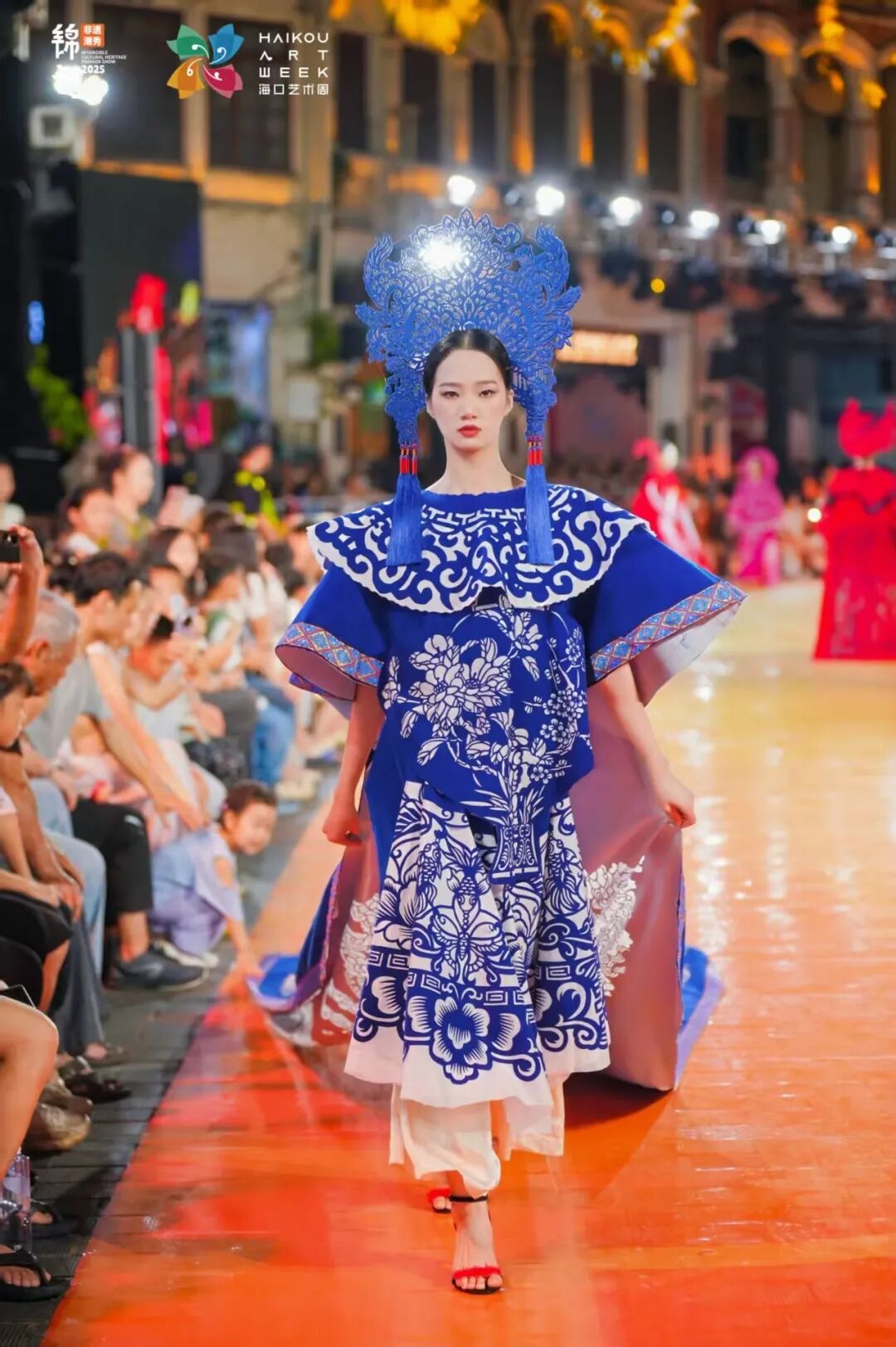 10月7日、8日晚,海南首个大型剪纸主题时装秀“锦色—2025非遗潮秀”在海口骑楼老街上演。(来源:海口发布)
