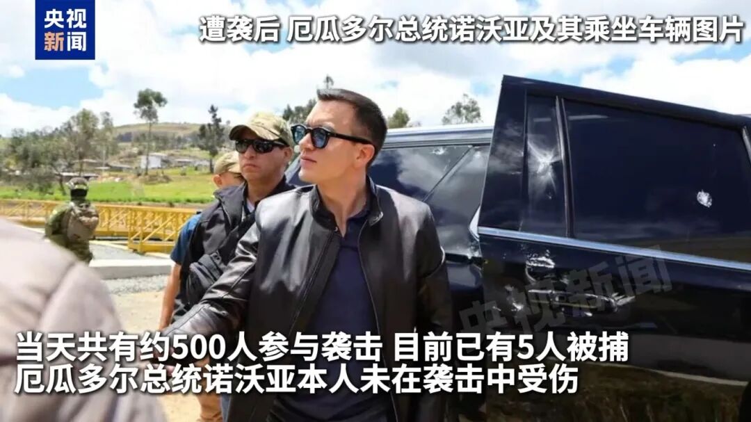 厄瓜多尔总统诺沃亚的车队近日在该国中部卡尼亚尔省遭遇袭击,诺沃亚未受伤。5名袭击者被捕。(来源:央视新闻)