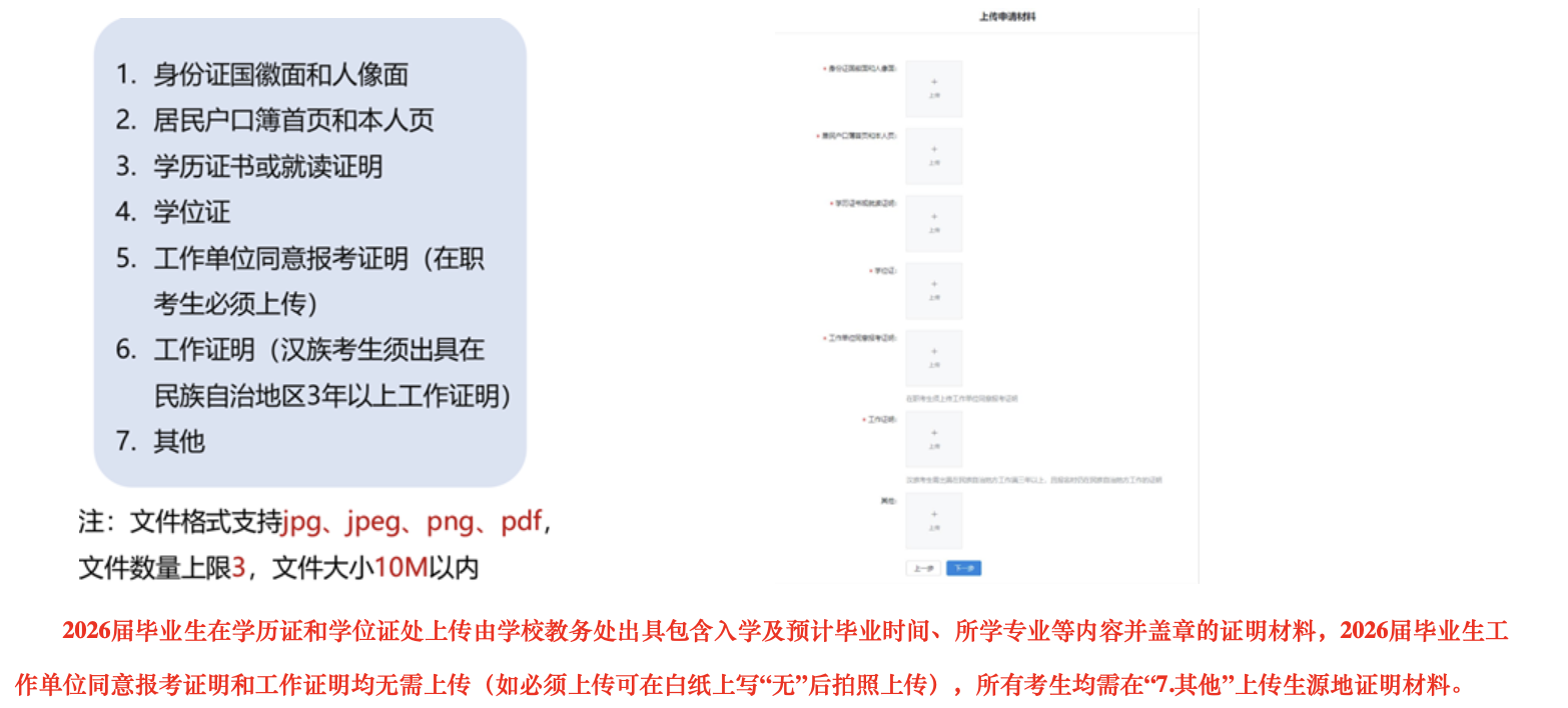 生源地证明材料方面,考生可提供本科录取花名册、学校出具的相关证明或高考报名表等材料之一。海南省考生还可通过“海易办”App申请下载相关证明。已工作但非在海南参加高考的少数民族考生,若户口和档案均在海南,可凭社保缴纳证明作为海南省生源报考。
