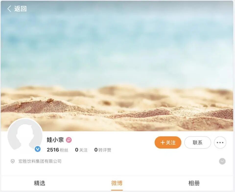 记者查询发现,“娃小宗”已在微博平台注册账号,认证企业为宏胜饮料集团有限公司,截至发稿,目前粉丝数为1087人,但是头像空缺。今年2月,宗馥莉就抢注了“娃小宗”全品类商标,5月悄悄推出相关无糖茶产品,9月还在西安砸10亿建了新生产基地,年产能能到80万吨。