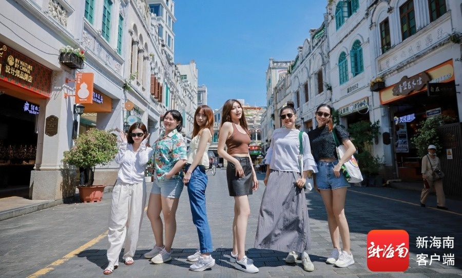 10月11日,海南旅游国际推荐官漫步骑楼老街。记者 李昊 摄