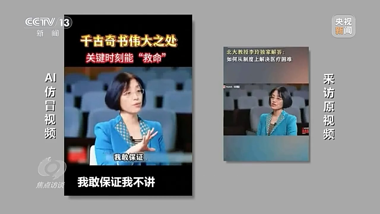 一段北京大学国家发展研究院李玲教授的采访视频,被不法人员利用AI技术将其篡改为一段虚假的推销视频,在网络上大肆传播。