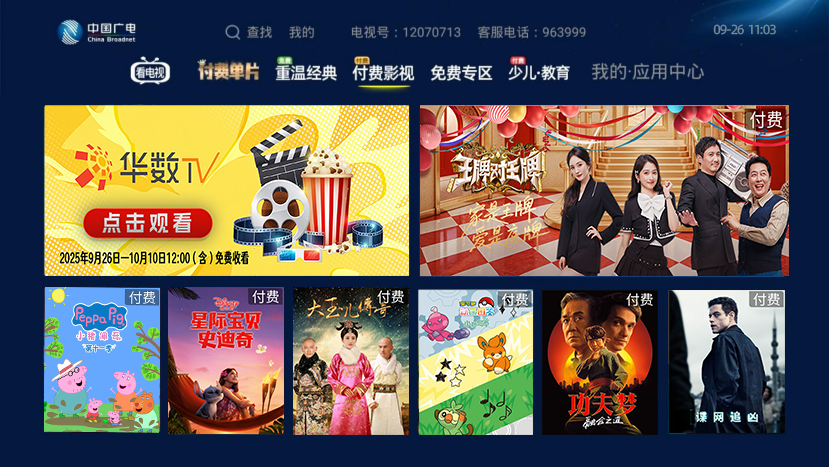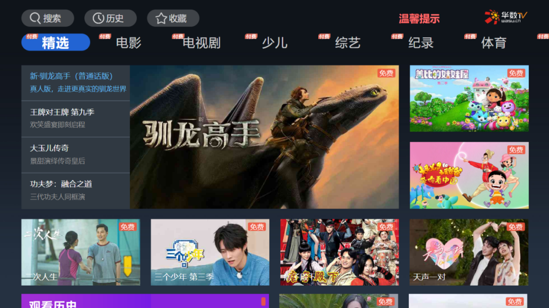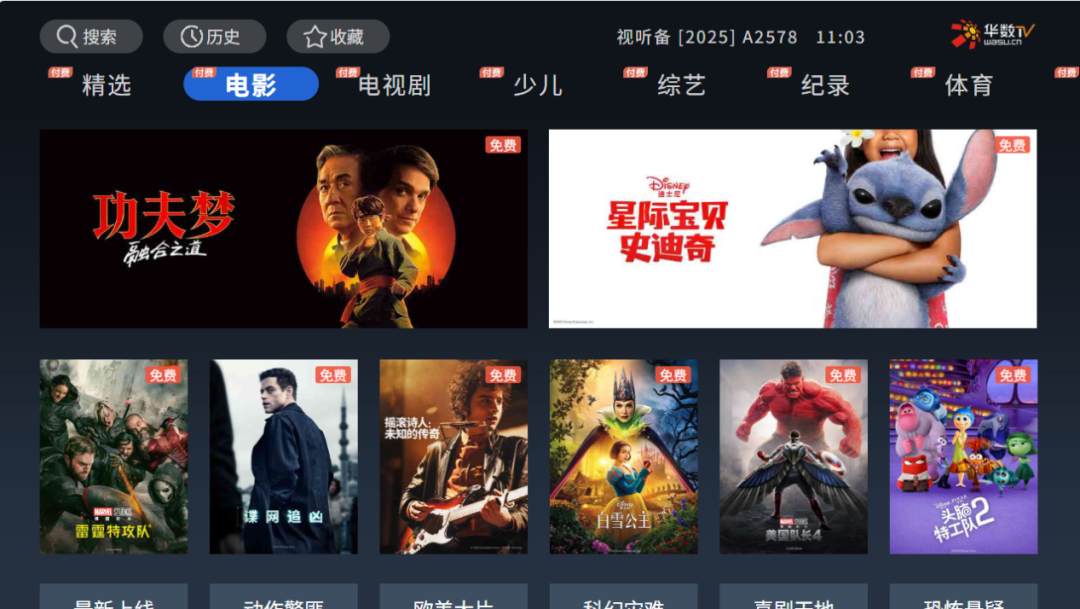 “华数TV”专区是为您和家人精心打造的综合娱乐中心。这里汇聚了最新最热的院线大片、追不停的爆款剧集、笑点密集的热门综艺,以及陪伴孩子成长的精品少儿动画。内容包罗万象,画质高清流畅,可满足全家人的观看需求。