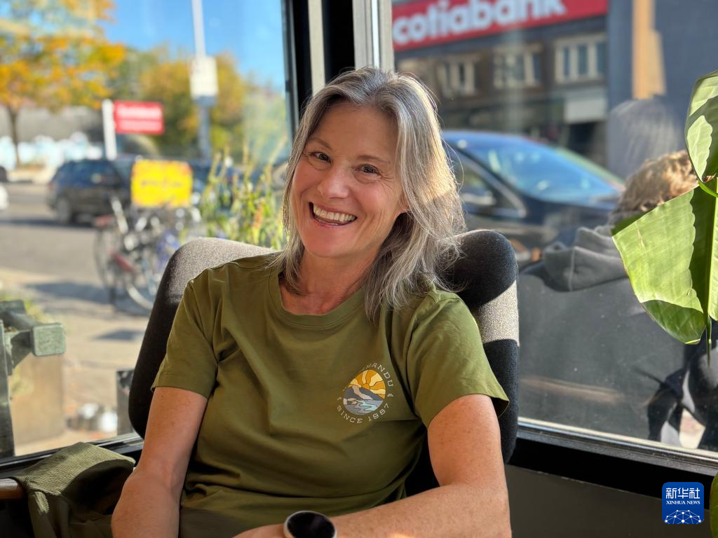 10月4日,佩姬·西利在加拿大渥太华一家咖啡馆接受记者采访。新华社发(陈敏摄)