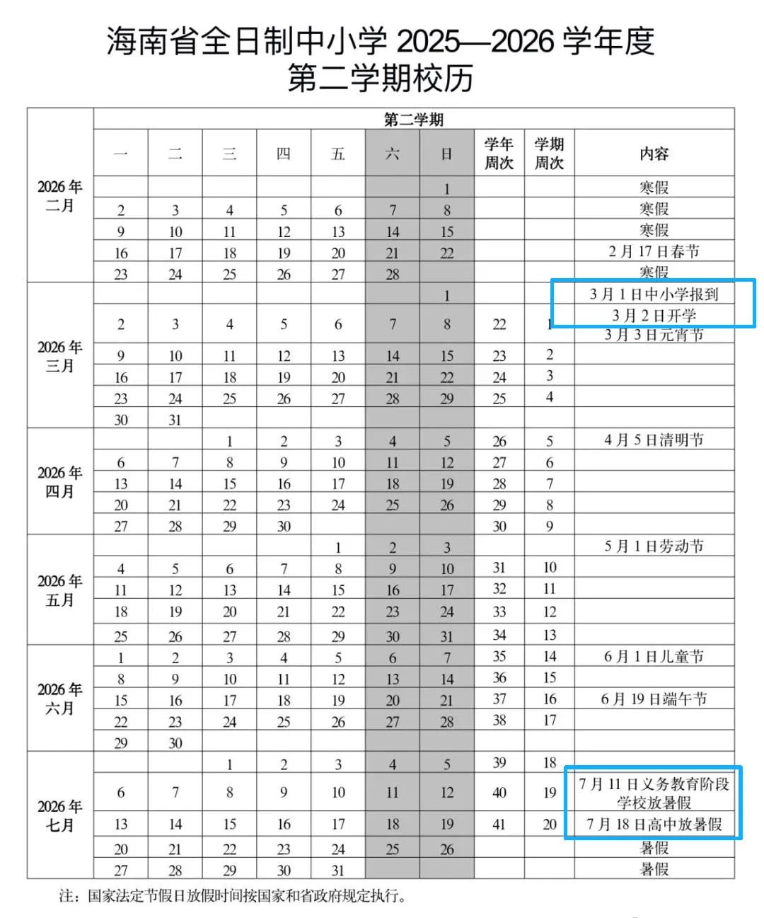 海南公布中小学明年寒暑假时间