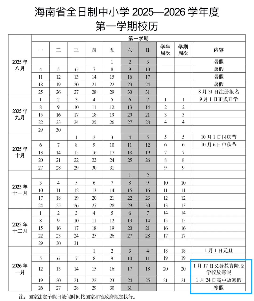 寒假开始时间:2026年1月17日