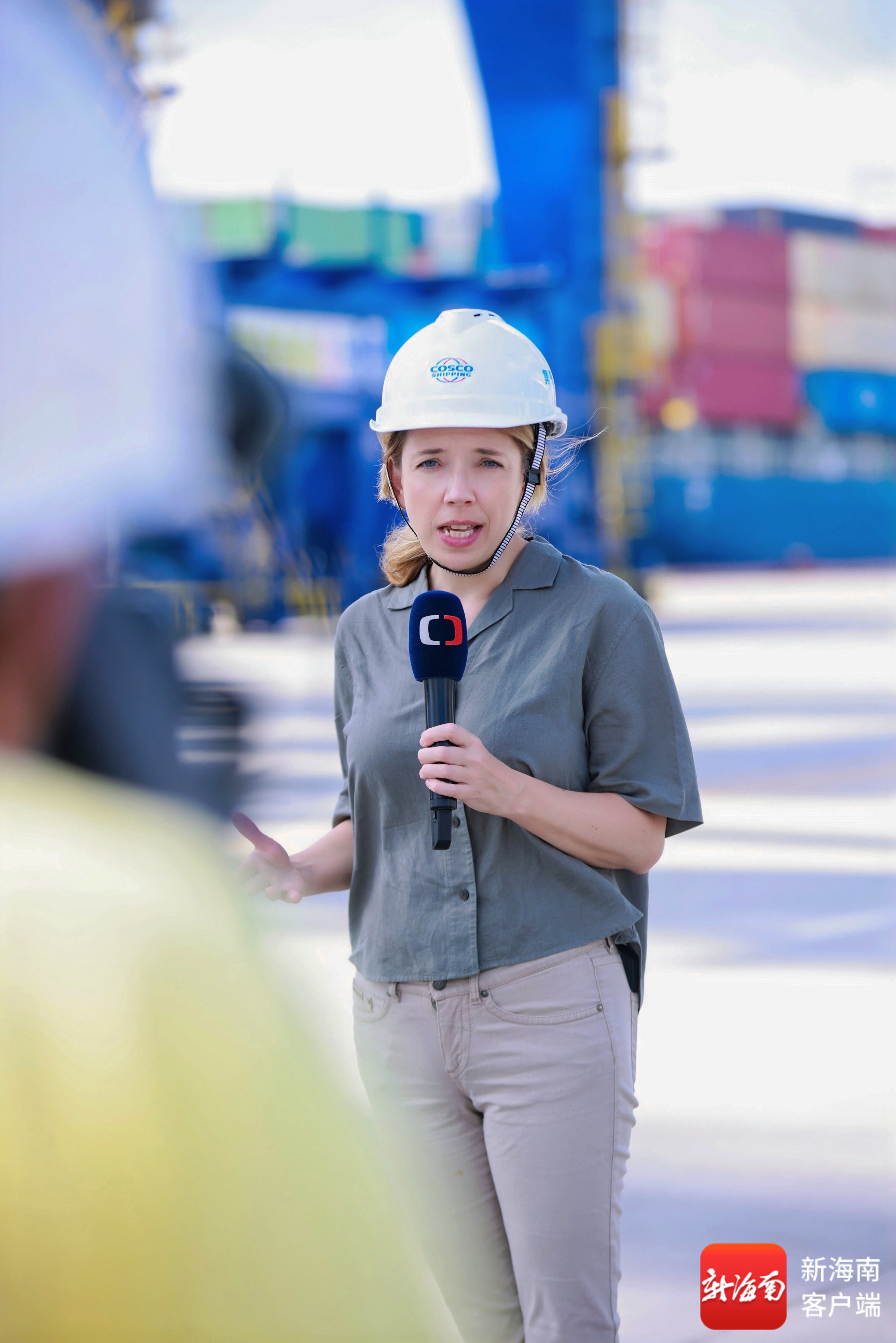 外媒记者在洋浦国际集装箱码头采访报道。主办方供图