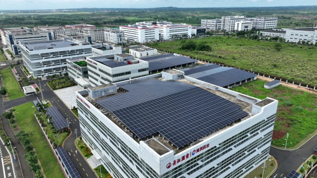 在海口国家高新区美安生态科技新城,多家企业的厂房和办公楼屋顶上整齐排列着光伏太阳能板。海南日报全媒体记者 陈元才 摄
