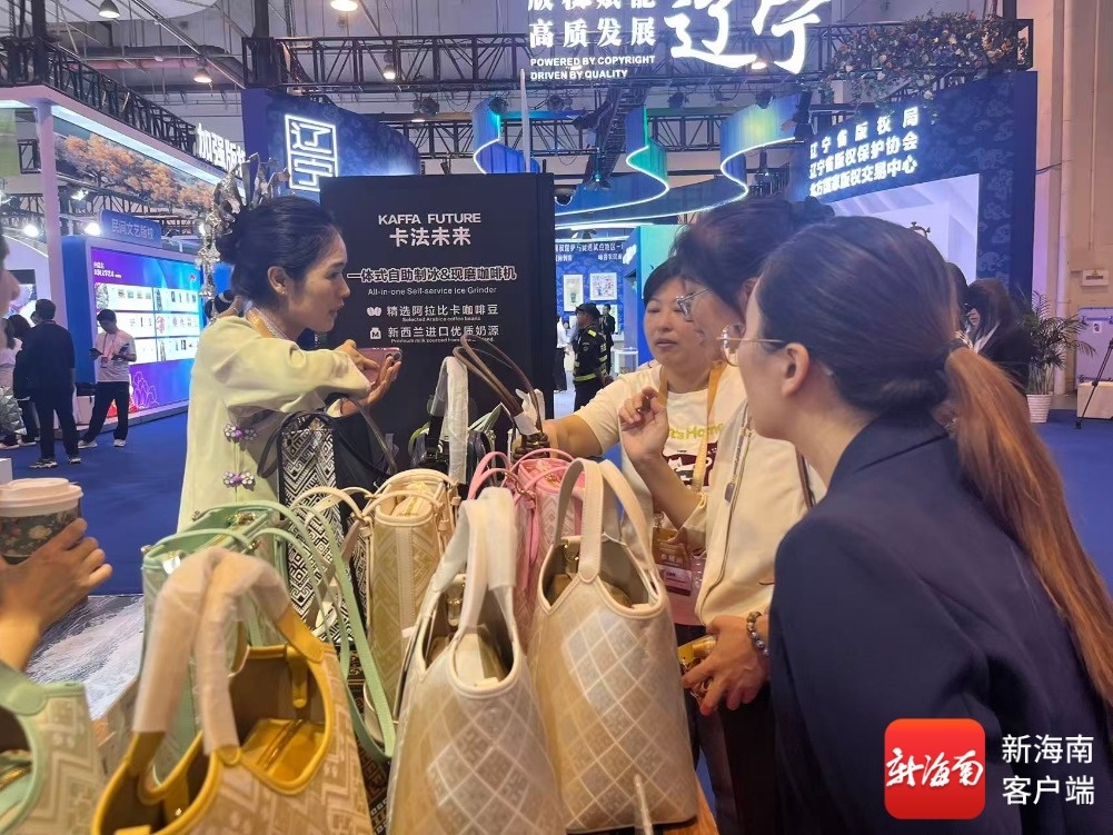 走进保亭展区,浓厚的民族艺术气息扑面而来。展台上精选的版权作品及手工艺品井然陈列,涵盖了黎族双面绣、传统图纹手工包、精美藤编等多个品类。每一件展品不仅是精美的实用艺术品,其背后更附有清晰的版权登记信息,是保亭民间文艺从“无形的文化资源”向“有形的版权资产”转化的生动见证。