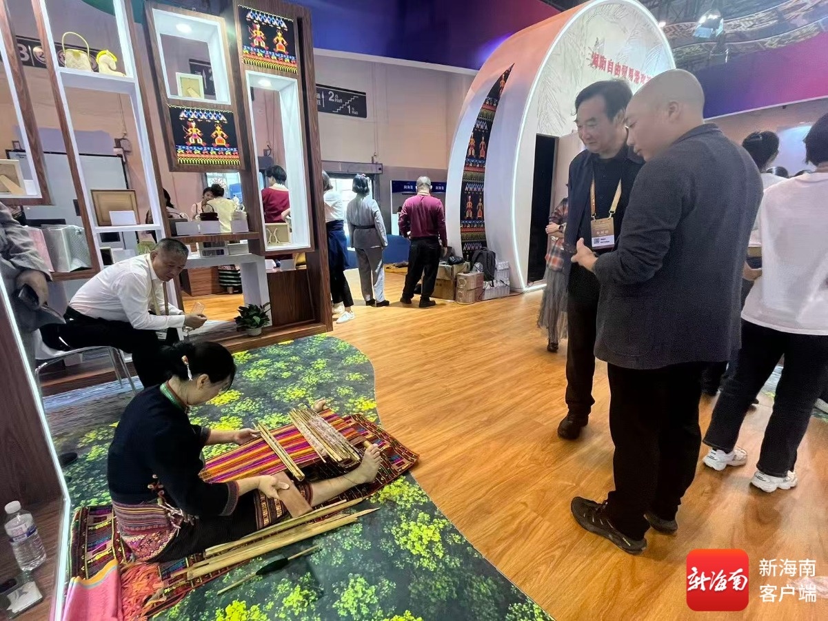 展区一侧,保亭县级非遗传承人林靓兰正全神贯注地演示黎族传统织绣技艺。飞针走线间,古老的图腾纹样逐渐呈现,吸引了大量观众驻足流连。这种“活态”展演,将民族文化的“传承”与版权的“保护”巧妙结合,直观地揭示了版权制度对于激励传承人创作、保障其合法权益的重要作用,让观众深刻感受到,版权并非遥不可及的法律条文,而是守护千年技艺生生不息的坚实盾牌。