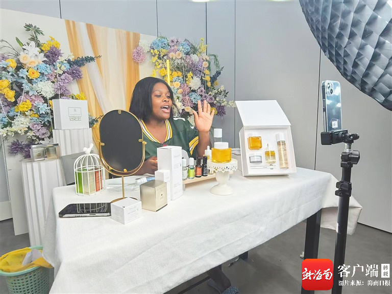 “Follow、Follow、Follow!Come on、Come on、Come on!”(点点关注!点点关注!家人们,动起来!动起来!)未见其人先闻其声,海南日报全媒体记者日前走进澄迈跨境电商直播基地,一声声中气十足的直播声正从直播间里传来,来自津巴布韦的跨境电商主播奎音(中文名田灵),正在用英语进行当天第二场直播。