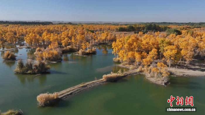 中新网新疆民丰10月19日电 (陶拴科)金秋十月,塔克拉玛干沙漠边缘的胡杨林迎来一年中最绚烂的时刻。18日,以“追着胡杨游和田”为主题的系列文化旅游活动在新疆民丰县启动,吸引八方游客齐聚这片金色胡杨林,共赴一场秋日视觉与心灵盛宴。