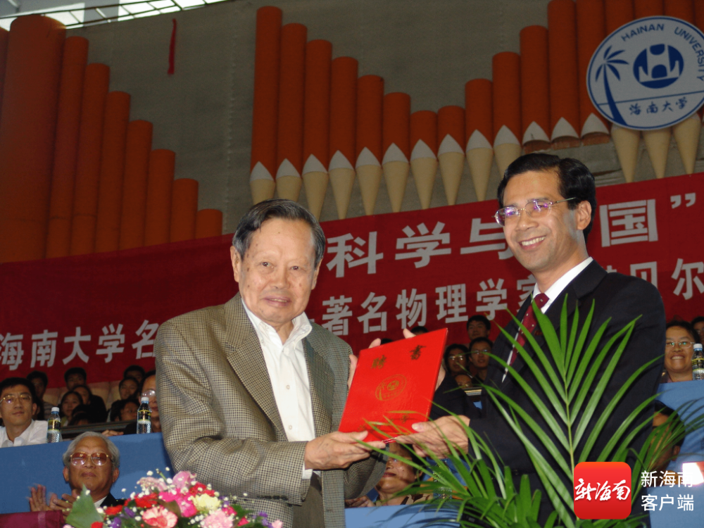 时间的指针回溯到2004年11月19日。当天下午,海南大学特聘教授杨振宁先生莅临学校,给全校师生作了一场题为“科技创新与大学生成才”的学术报告。