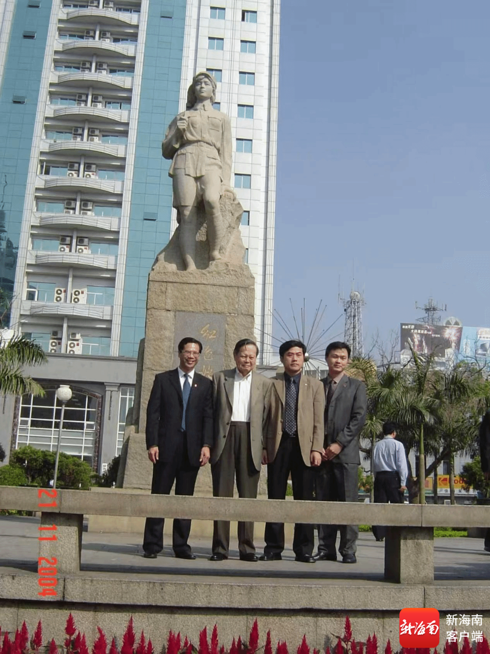 2004年11月21日,杨振宁在时任海南大学校长谭世贵的陪同下参观红色娘子军纪念馆。海南大学供图