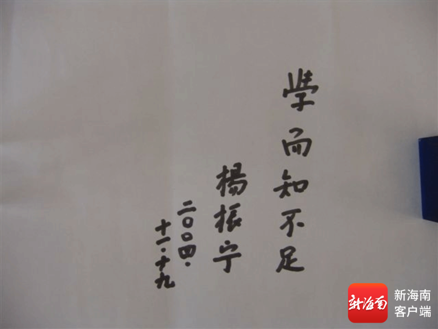 2004年11月19日下午,杨振宁寄语“学而知不足”。海南大学供图