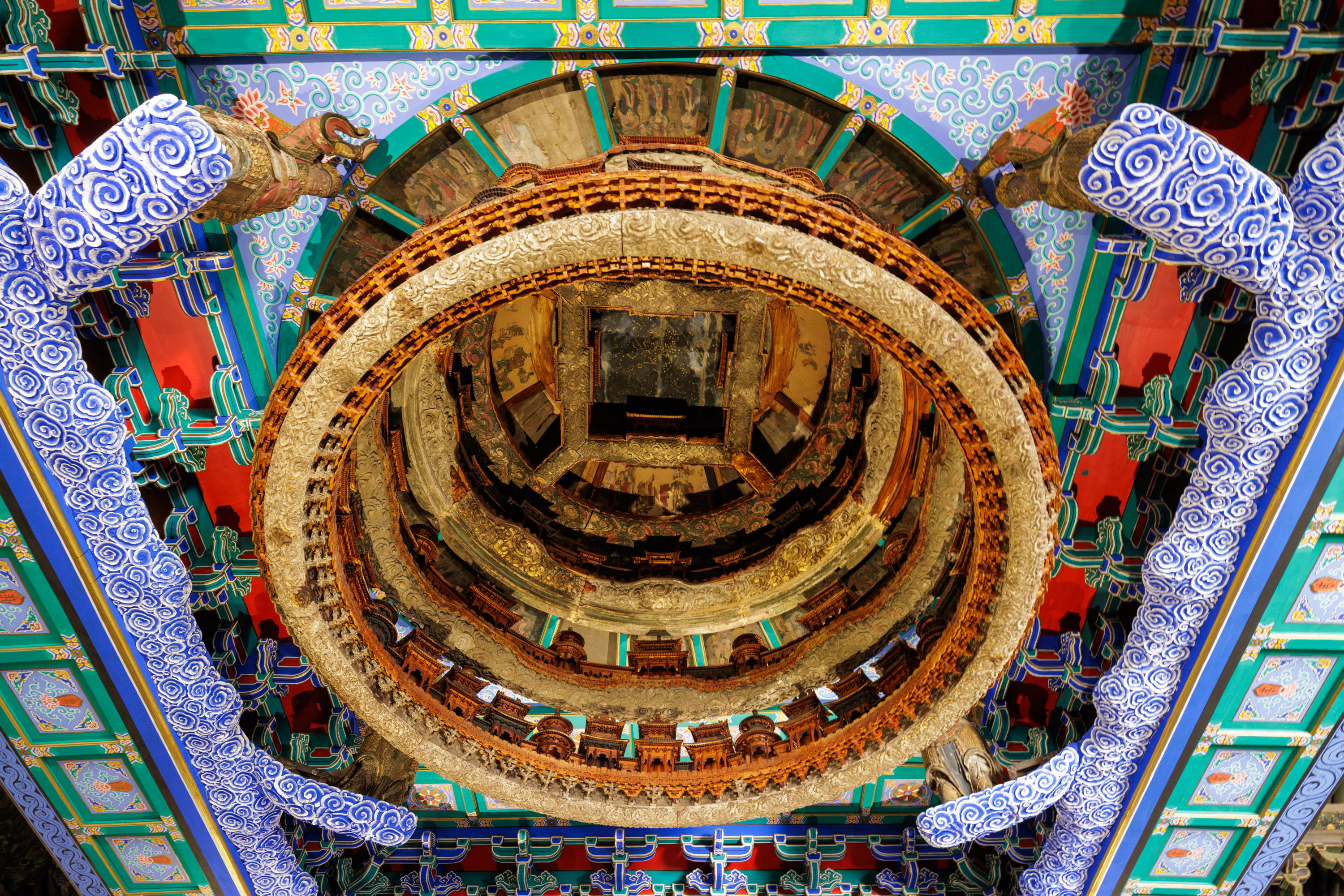 北京隆福寺万善正觉殿天宫藻井。新京报记者 王子诚 摄