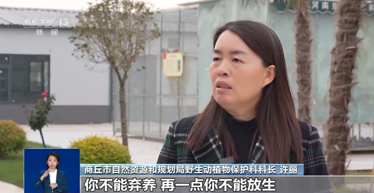 商丘市自然资源和规划局野生动植物保护科科长 许丽:无论是作为养殖场还是个人玩家,不能弃养,也不能放生,有的是国家一级保护动物,如果放生的话,会造成潜在外来物种入侵的风险。