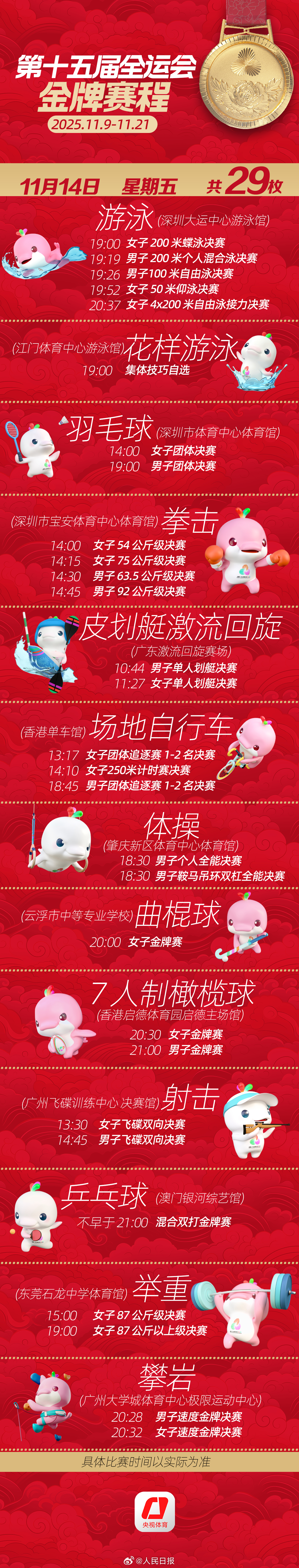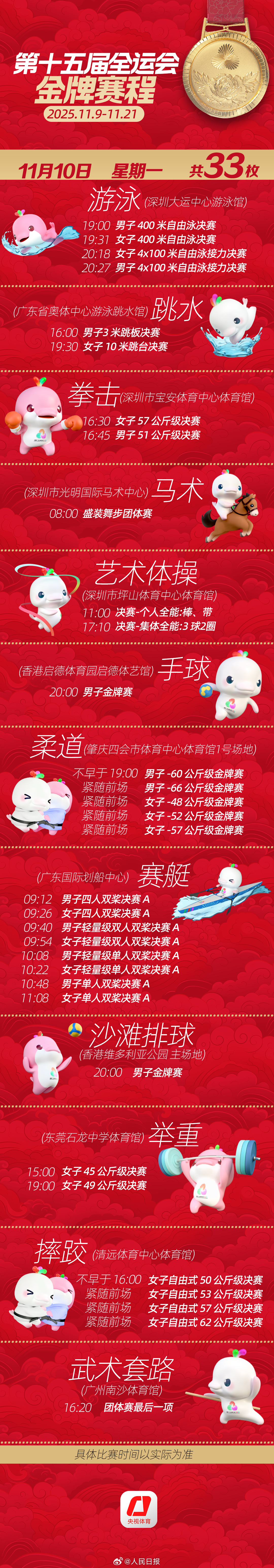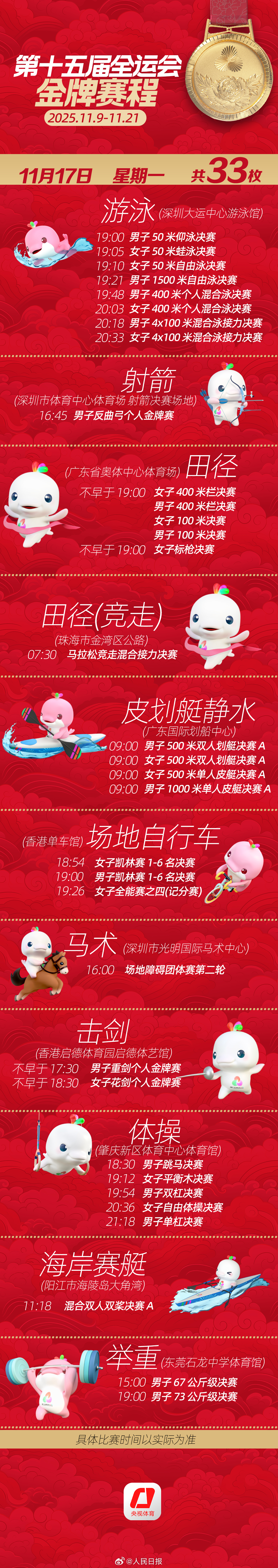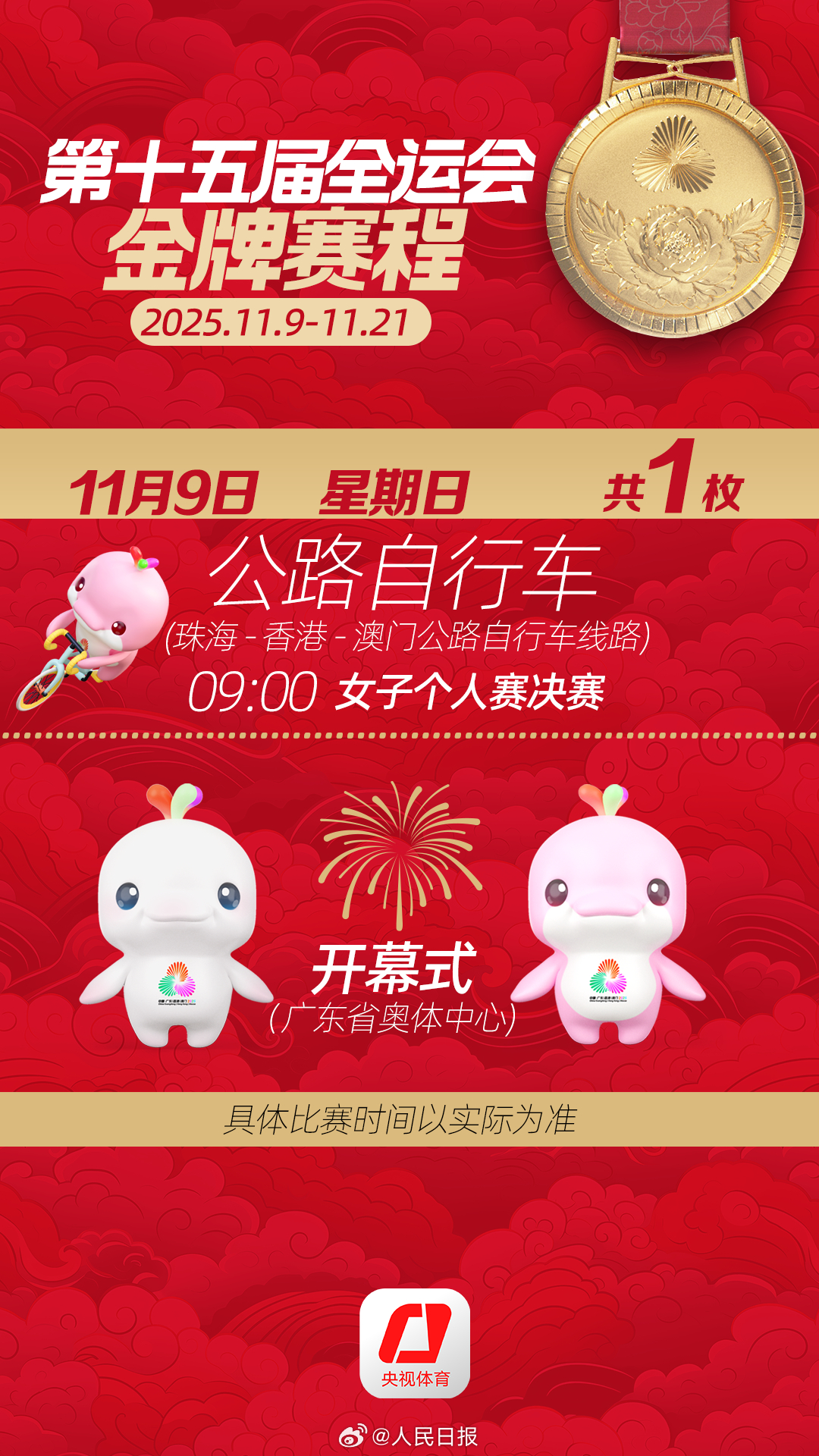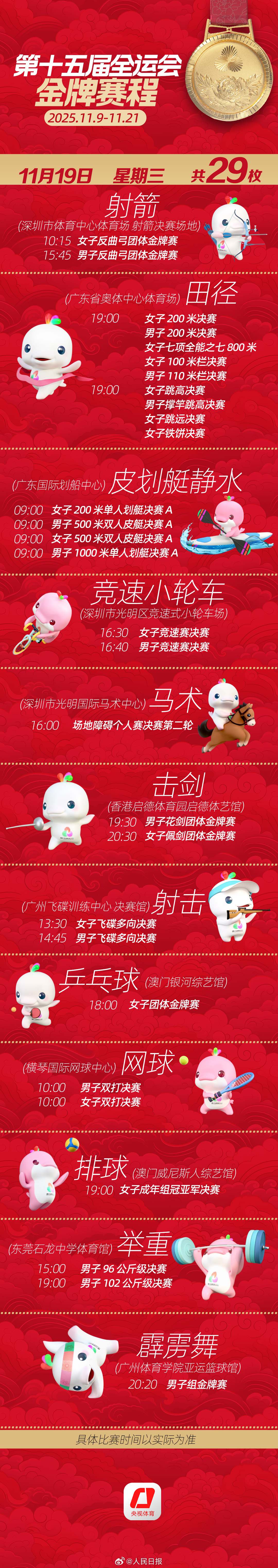 第十五届全运会开幕式将于明日举行。收藏十五运会金牌赛程,一起看全运会。