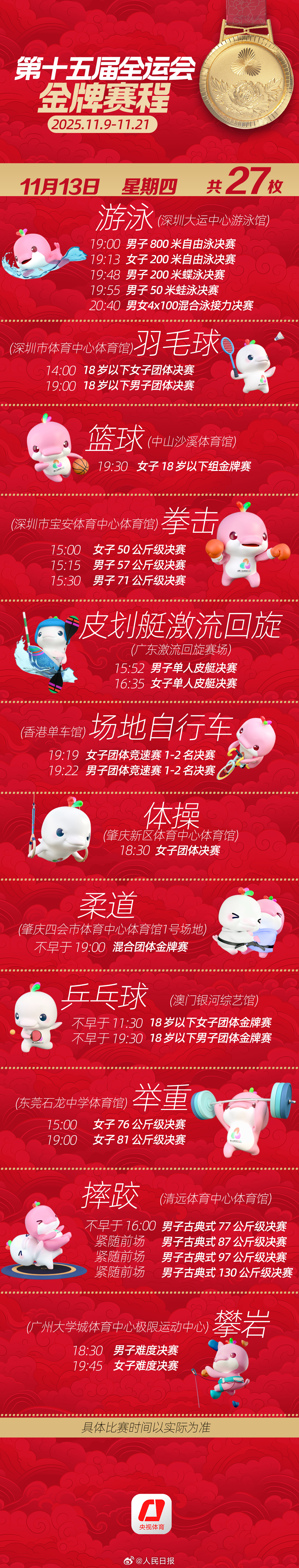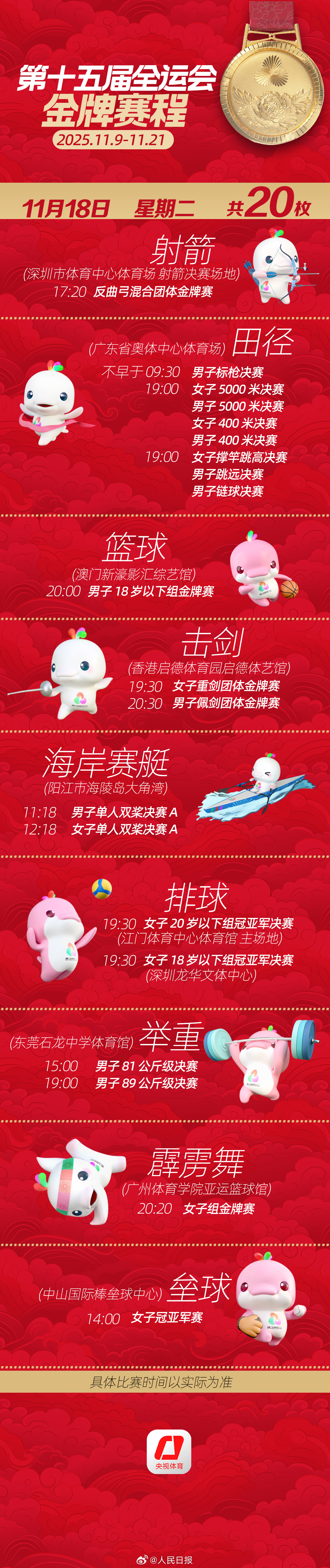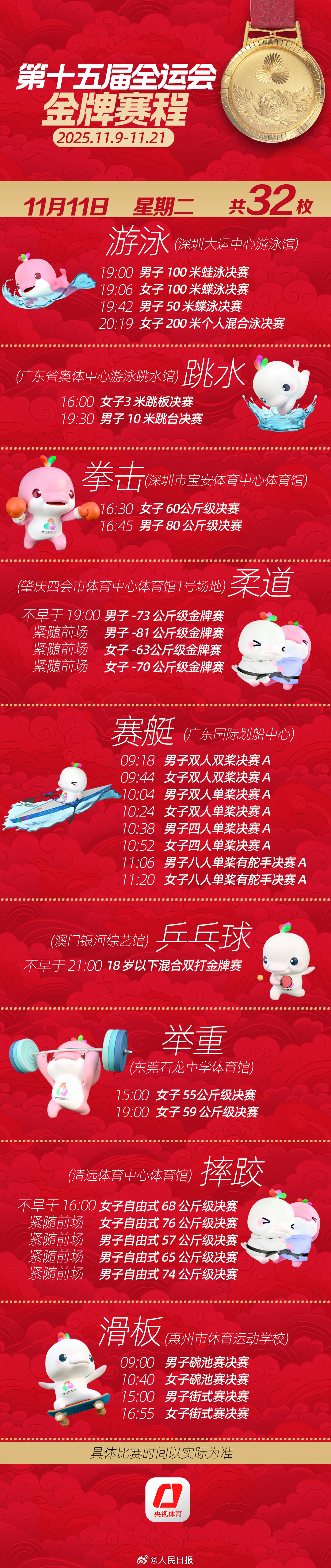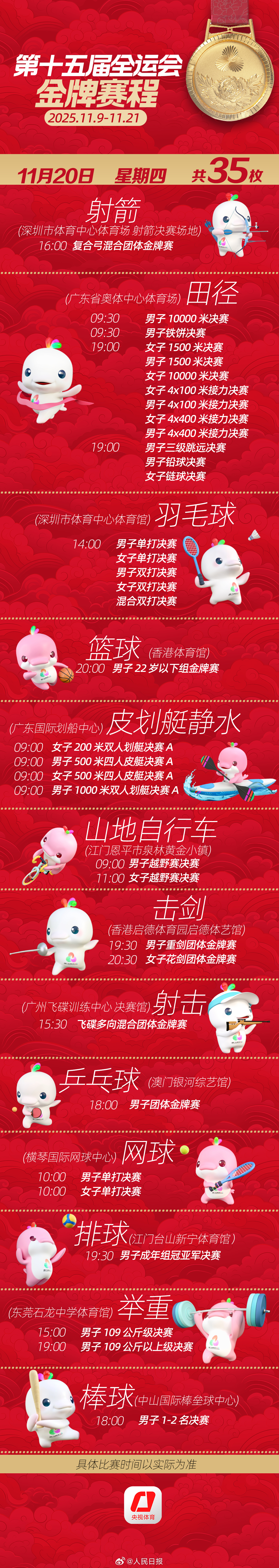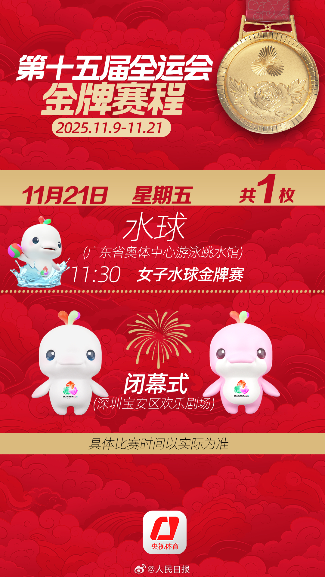 第十五届全运会开幕式将于明日举行。收藏十五运会金牌赛程,一起看全运会。