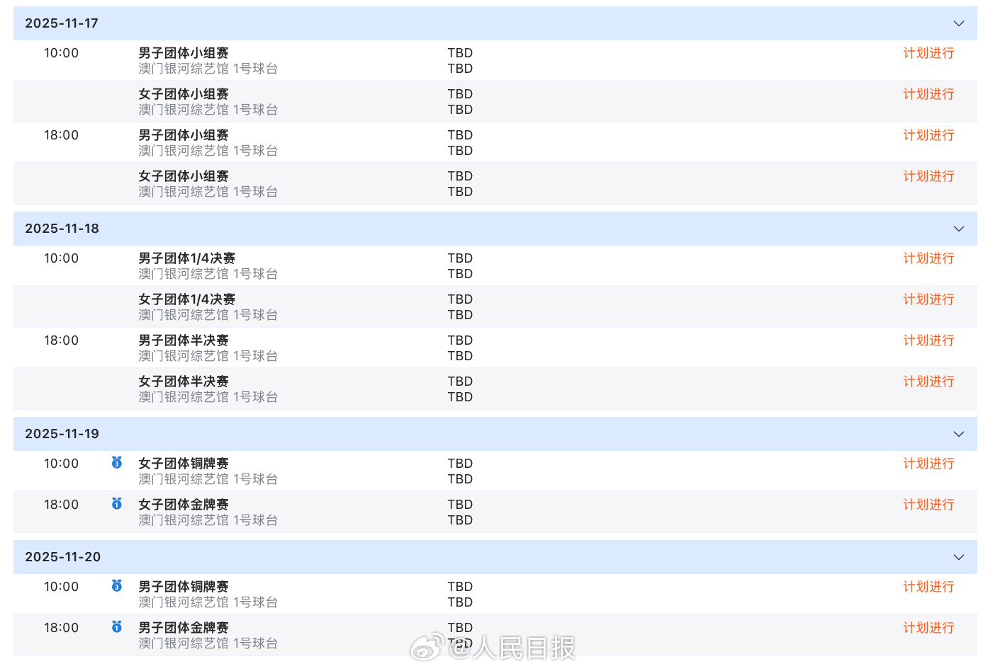 十五运乒乓球赛程