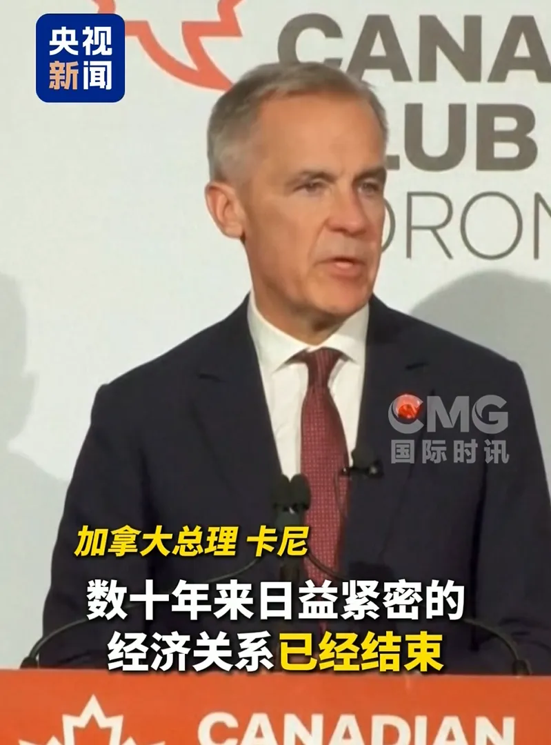 加拿大总理卡尼近日表示,加拿大和美国之间数十年来日益紧密的经济关系已经结束。详情(来源:央视新闻)