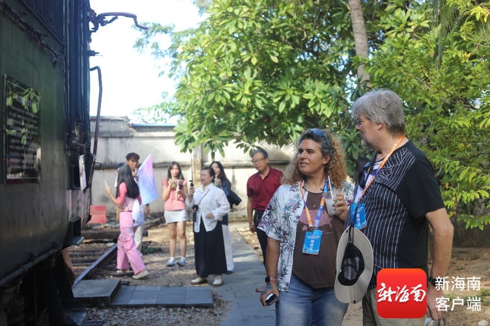 有激情的赛事、优美的景色,更有厚重的历史文化。位于东方市八所镇的海南铁路博物馆,于2008年由原海南铁路总公司旧址改造建成。馆内展出了包括解放前海南铁路诞生史、解放后海南铁路艰苦创业史、海南环岛高铁发展史等内容,记录海南铁路人艰苦奋斗的创业历程。看着被岁月侵蚀的老旧火车,来自美国的Marian Rosenberg(岳玫瑰)脸上表情格外凝重,她认真聆听讲解员的讲解,对于东方这座城市所经历的磨难,以及奋斗崛起感到震撼及佩服。“在东方,最有意思的是去了海南铁路博物馆,我特别喜欢跟历史相关的内容。”