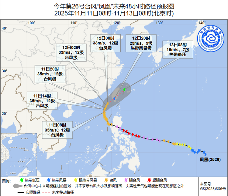 南海网、新海南客户端11月11日消息(记者 姚皓 通讯员 林俊汝 吴春娃 翁小芳)记者从海南省气象台了解到,今年第26号台风“凤凰”(台风级),11月11日08时中心位于北纬19.5度、东经118.2度,也就是在距离台湾鹅銮鼻西南方向约385公里的南海东北部海面上,中心附近最大风力12级(35米/秒),七级风圈半径380~480公里,十级风圈半径180~220公里,十二级风圈半径80公里。