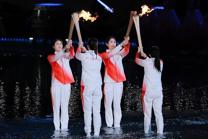 △十五运会开幕式,王柳懿 /王芊懿担任火炬手。