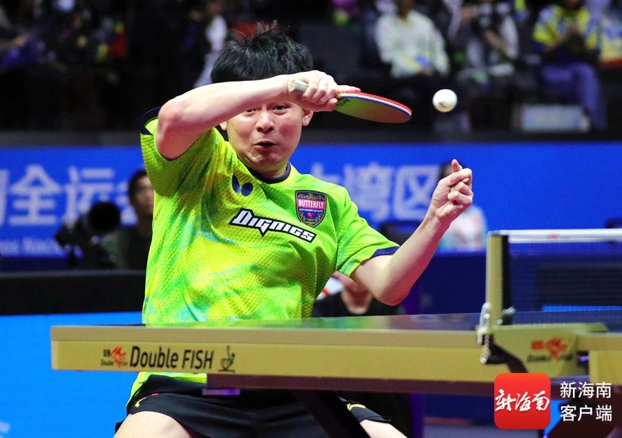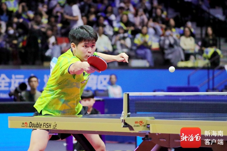 海南队选手林诗栋在比赛中回球。图源:新华社