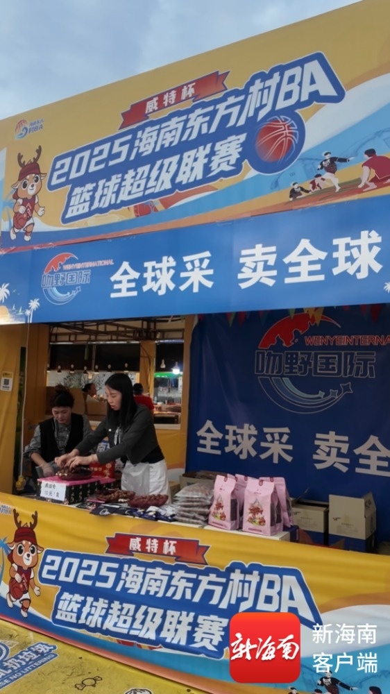 李帅是吻野(海南)食品有限公司在“村BA”主题市集的“摊主”,这间挂着“全球采 卖全球”标语、仅几平方米的摊位,正依托赛事火爆的人流让产品圈粉热销。