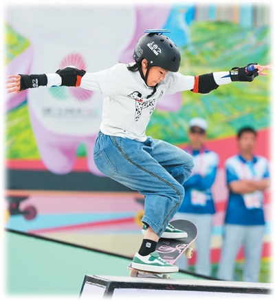 上海队选手徐琳泷在滑板比赛中。新华社记者 刘坤摄
