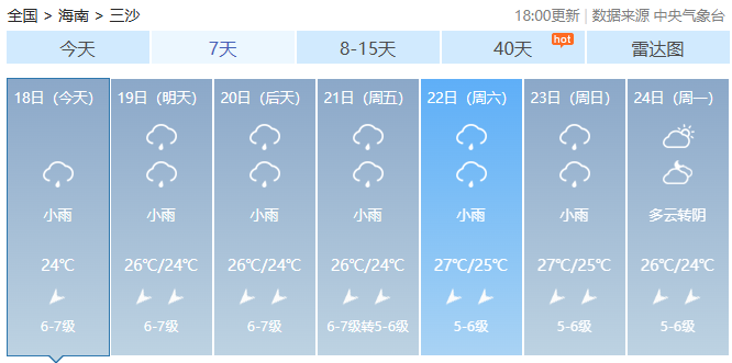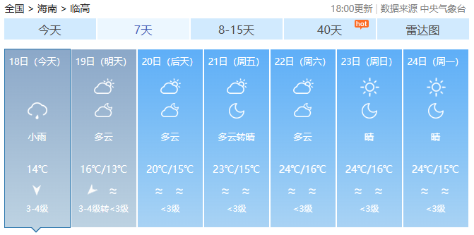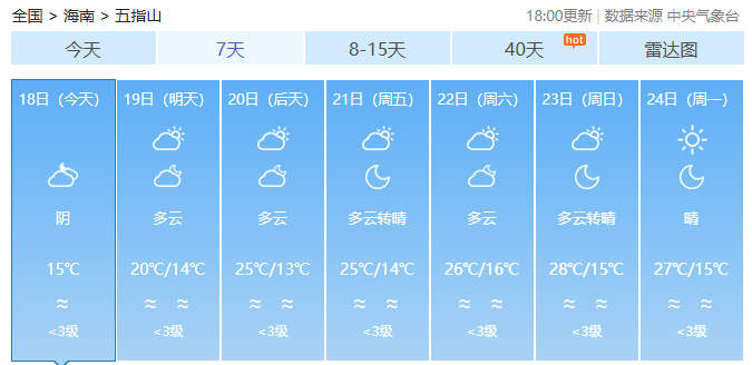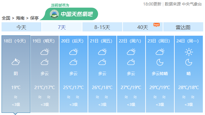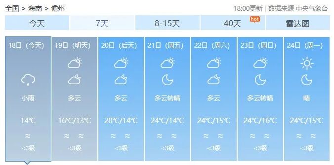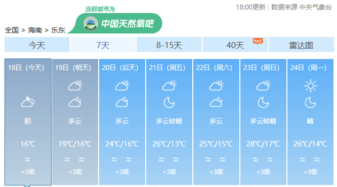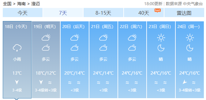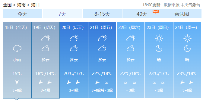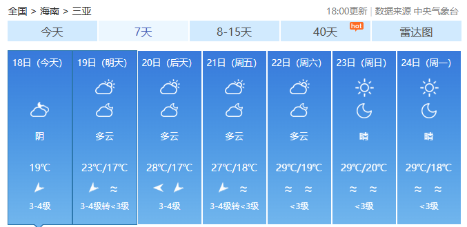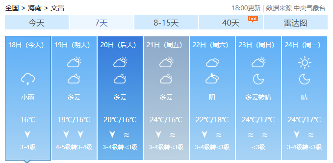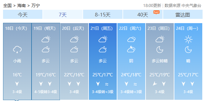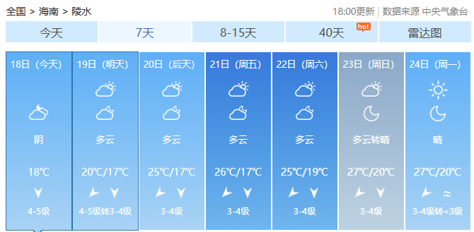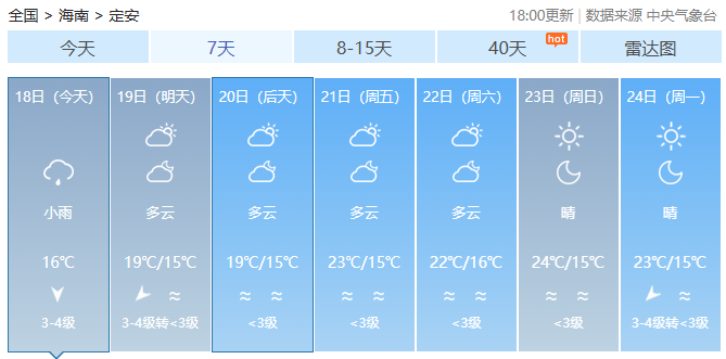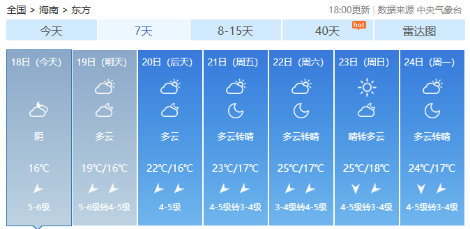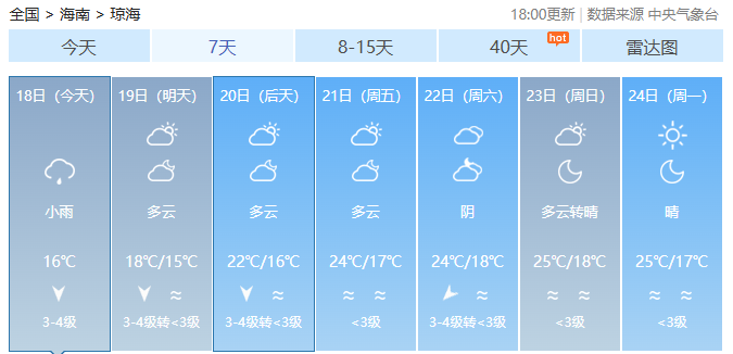 海南各市县未来7天天气预报