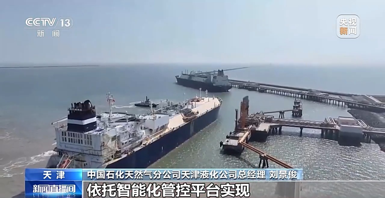 中国石化天然气分公司天津液化公司总经理 刘景俊:依托智能化管控平台,实现从船舶接卸到管网外输的全链条精细化管理,日均外输气量在1000万立方米左右,高峰期外输能力可以达到5800万立方米。