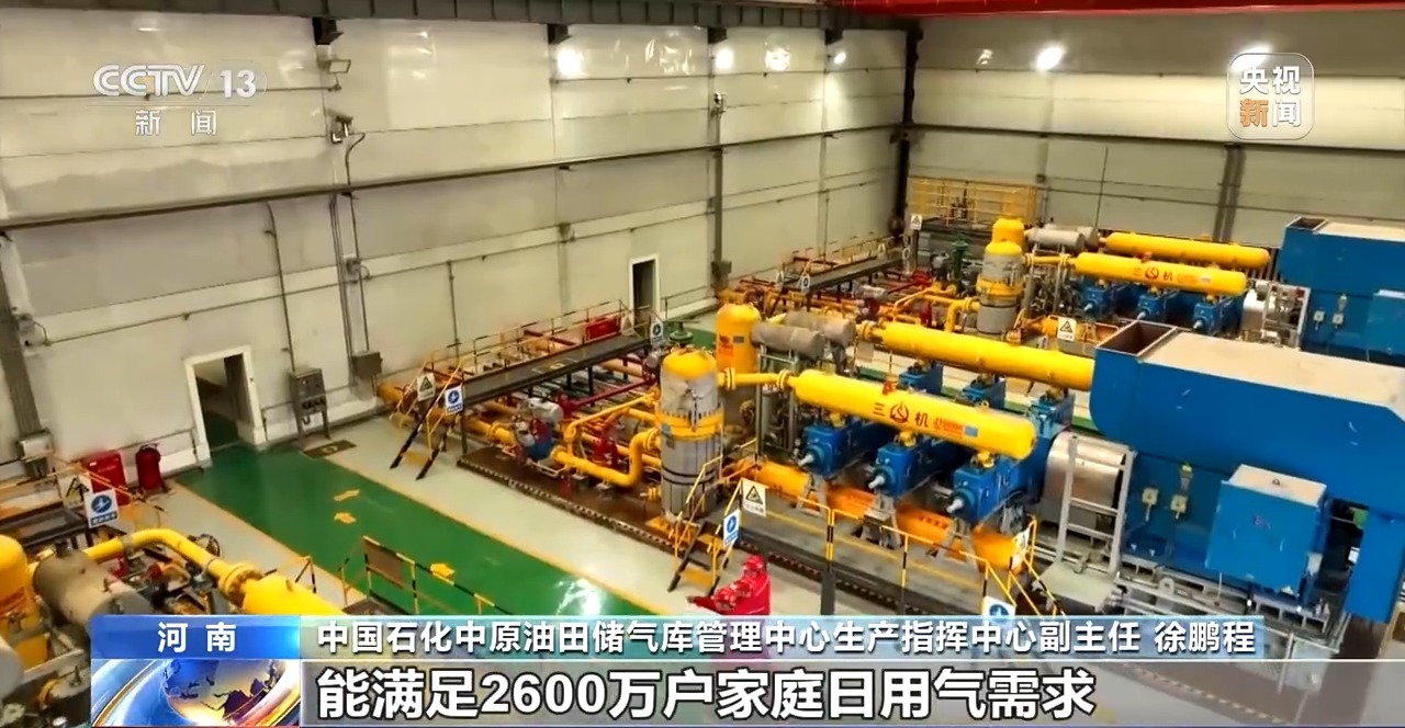 中国石化中原油田储气库管理中心生产指挥中心副主任 徐鹏程:入冬前,中原油田储气库群完成注气储备9.4亿立方米,较去年多储备1.2亿立方米,达到历史最高水平。在用气高峰期,能满足2600万户家庭的日用气需求。