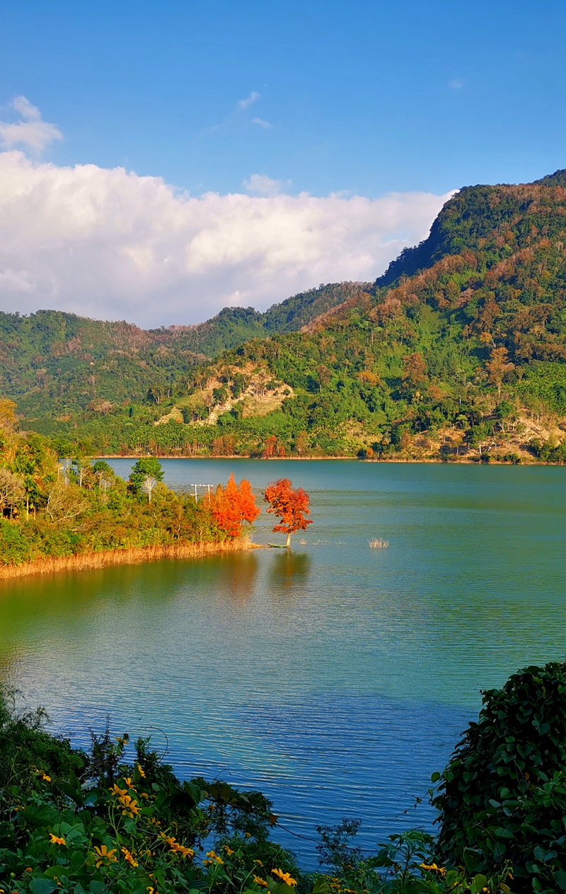 资料图:五指山市水满乡区域内的枫叶变红景观,山水相连,美不胜收。海南日报记者 于伟慧 摄