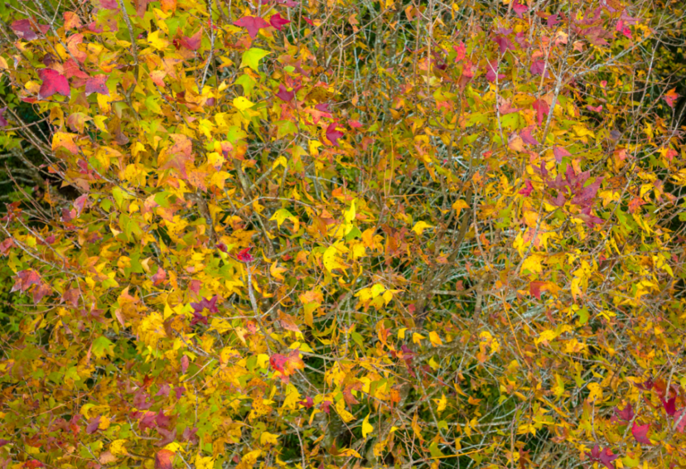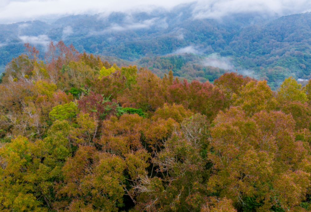 资料图:五指山枫树叶红、黄、绿相间。李天平 摄