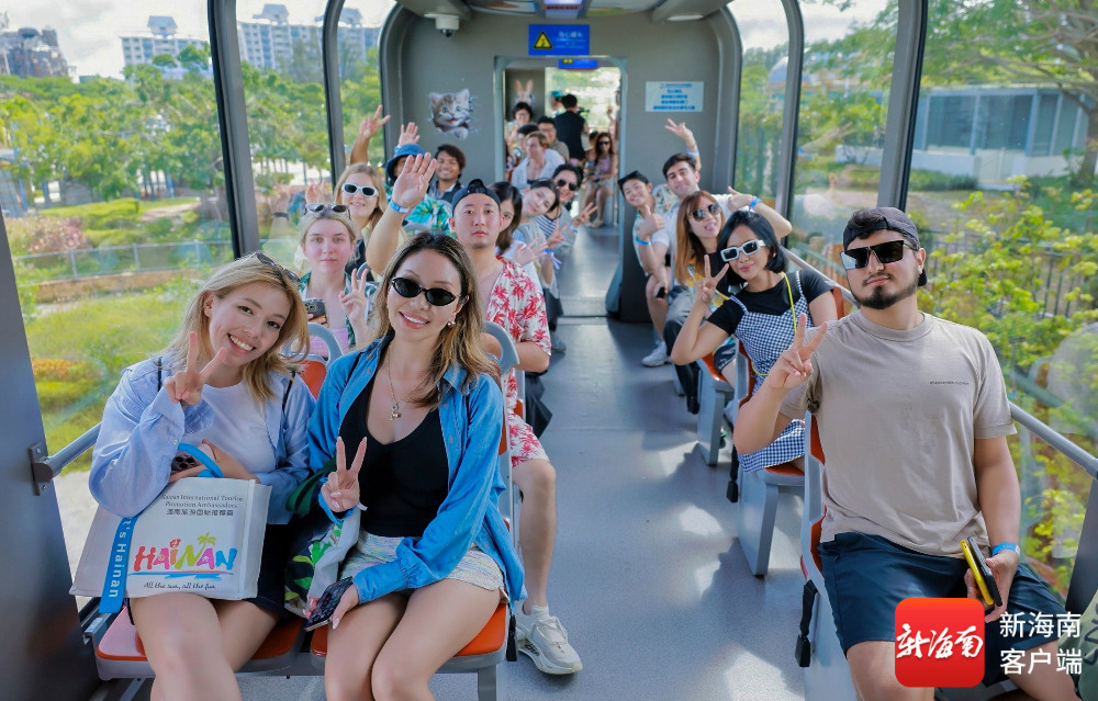 海南旅游国际推荐官在海南热带海洋欢乐世界乘坐小火车。记者 李昊 摄